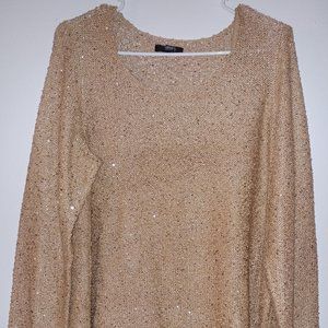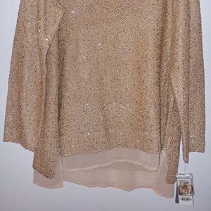 Alfani Sweater Sequin Knitted Hemline High Low Gold Shimmer Embellished Pullover top Long Sleeve Knitted Top Blouse