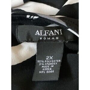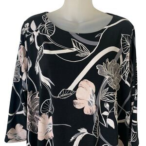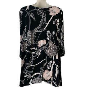 Alfani Womens 2X Tunic Top Black White Floral 3/4 Sleeve Asymmetric Hem Stretchy