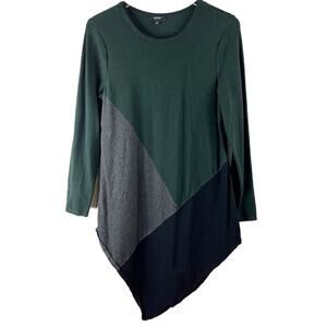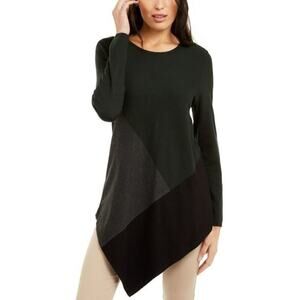 Alfani Women's Asymmetrical Color Block Sweater Dark Green Size M. Perfect with leggings, Alfani's longline tunic is the ultimate top layer with its colorblocked design and flowy asymmetrical hem.