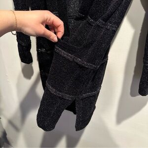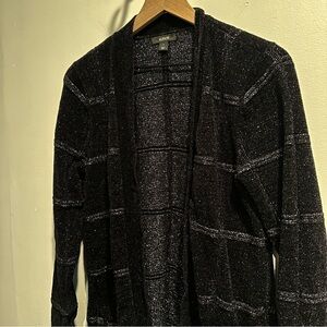 Alfani Women’s Black Silver Shine Windowpane Open Front Long Cardigan Size Large