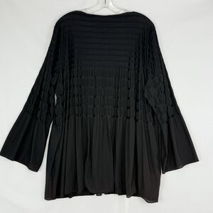 Alfani Women’s Black Textured Pleated Tunic Top Sheer Bell Sleeve Plus 3X