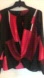 Alfani blouse with a striking black and red abstract pattern. Features a stylish twist front design. Like new, wore once