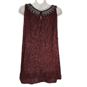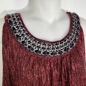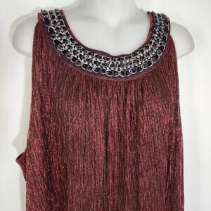 Alfani Womens Blouse 3X Metallic Red Lurex Sleeveless Embellished Chain Neck Top