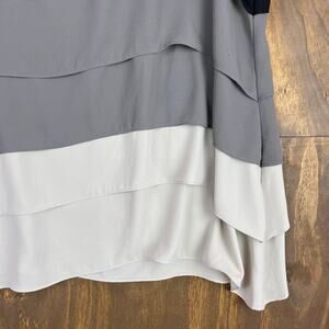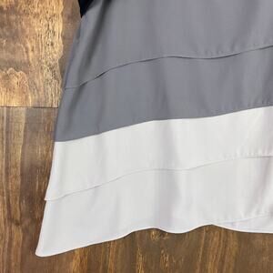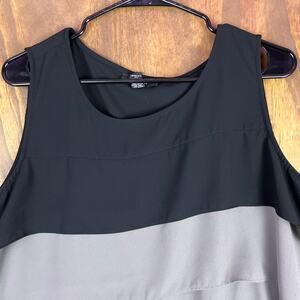 Alfani Womens Blouse Black Gray White Layered Tank Round Neck Sheer Stretch 14
