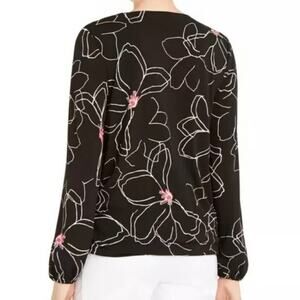 Faux Wrap Floral Print Blouse Alfani Black White and Pink