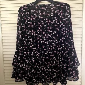 This is an absolutely gorgeous top that will easily go from the office to dinner! It is sheer with an added layer for lining. The ruffles and details make it flattering and flowy providing an elevated look without any hassle!