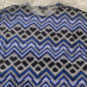 Alfani Women's Chevron Patterned Blouse in Blue and Black Size 2X