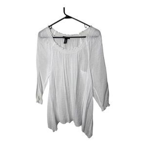 Alfani Womens Crinkle Pullover Blouse, White, size 12 lightweight Rayon Nylon Blend flowy beach vacation euc smoke free dog friendly home