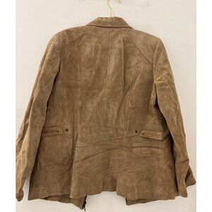 Excellent used condition. Alfani Women's Genuine leather Tan Full Zip jacket Western Cowgirl Plus size 1X. Length 29in, pit to pit 23in.