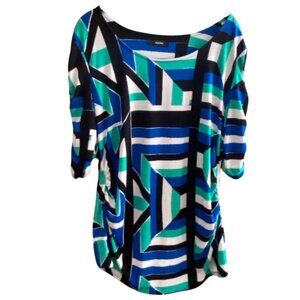 Alfani Womens Half Sleeve Geometric Blouse-Rush Detail-Multicolor-Size L