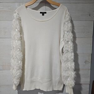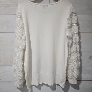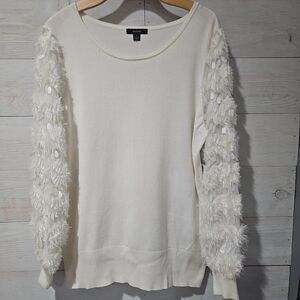 Alfani Women's Ivory Long Sleeve Sequined Pullover Sweater Size S