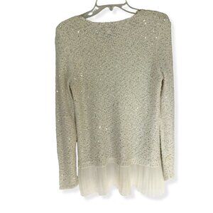 Alfani Women's Long Sleeve Chiffon Hem Sequin Pullover Sweater Sz Small in White