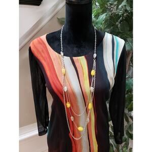 Alfani Women's Multi Printed Side Slit Round Neck Long Sleeve Top Blouse Medium.