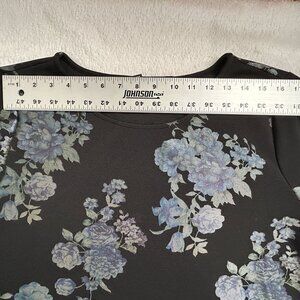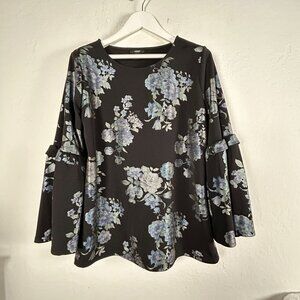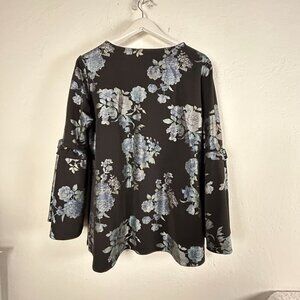 Alfani Womens Plus Size 3X Floral Bell Sleeve Top Blouse Black Stretch NWOT