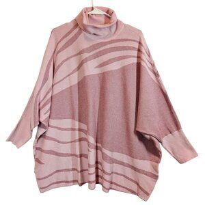 Alfani Womens Plus Size 3X Pink Zebra Print Knit Boxy Sweater \Turtleneck