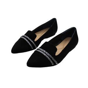 Alfani Womens Poee Strap Leather Slip on Smoking Loafers Black 7.5 Medium (B M)