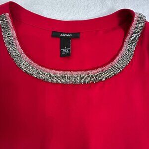 Alfani Womens Red Layered Chiffon Blouse Tunic Embellished Neck Size 8 Career