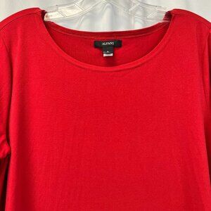 Alfani Womens Red Ruffle Bell Sleeve Round Neck Pullover Blouse Top Size Small