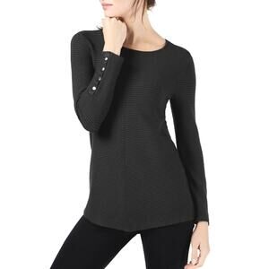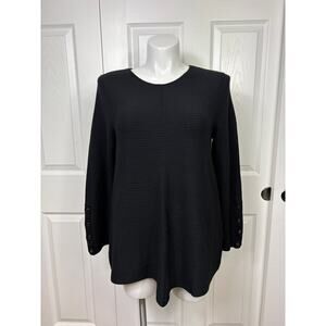Alfani Women's Ribbed Black Sweater Size XL Snap Detail Scoop Neckline