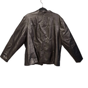 This Alfani Women's Bronze Motorcycle Leather Lined Jacket is a stylish and trendy choice for any fashion-forward woman. With its full zip closure and size 2X, it offers a comfortable and flattering fit. This jacket is not only durable but also adds a touch of edginess to any outfit. The bronze color adds a unique and eye-catching element, making it a versatile piece that can be dressed up or down. Stay warm and fashionable with this must-have jacket.