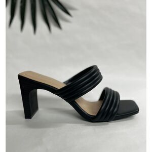 A sleek block heel elevates the sleek quilted straps and sophisticated square toes of the Stantonn sandals from Alfani.