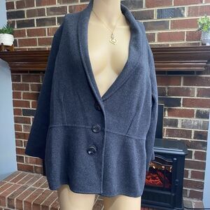 Alfani Womens Sweater Jacket Size 2X Gray Cotton Buttons Front Comfort Pre Owned