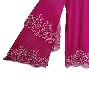 Alfani Women's Sz XL Bright Pink Boho Tiered Flare Sleeve Embroidered Mesh Top