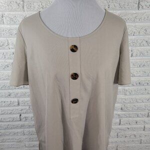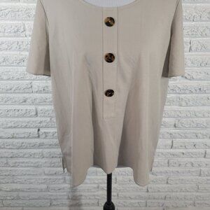 Alfani Womens Top 0X Plus Flutter Sleeve Beige Deco Buttons Office B24E