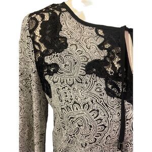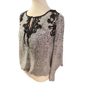 Alfani Women's Gray Lace with Black Paisley Flared Sleeves Semi Sheer Camisole S
