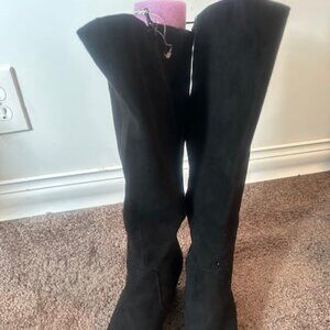 Alfani Wylde Black block-heel Faux Suede boots, size 11M (Fabric upper, balance man-made)