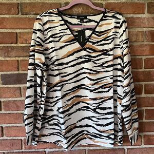 Alfani Zebra Stripe V-Neck Long Sleeve Blouse