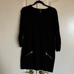 Alfani black crew neck sweater tunic with gold zipper pockets Petite Large LP