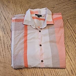 Orange and gray plaid button down shirt XL Alfani 100% cotton
