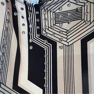 Stretchy material. Studded at the neck and hemline. EUC