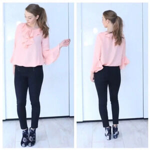 Black wear to work leggings with faux zips at front. Nice, thick material. Stretchy. Size 2P. Light wear reflected in discounted price.