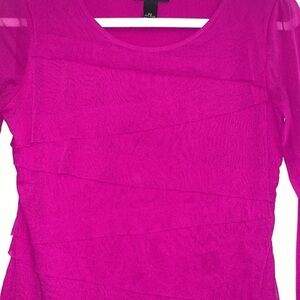 Beautiful Raspberry color, Alfani petite small blouse, top tiered very flattering throughout the front does have a lined bodice , sheer three-quarter sleeves.