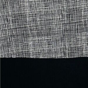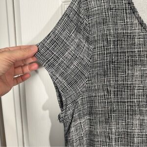 Alfani black and white tunic top in size large. Black and white print top with a black bottom, short sleeves, scoop neck. Great transitional piece into fall. 96% rayon/4% spandex.