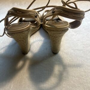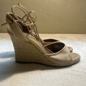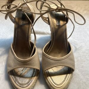 Some discoloration on sole, and bottom of the heel Small indents on sole near toe area.