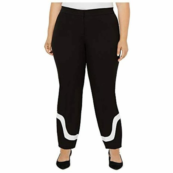 Alfani women plus size 20W Ponte color block ankle pants black, 57% cotton, 37% rayon, 6% spandex.