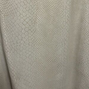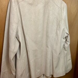 Beautiful Alfani woman, white leather jacket. This is genuine reptile embossed leather. Full working zipper in the front. Jacket has been worn only a few times in the show minimal signs of wear around the neck as pictured. Jacket is fully lined.