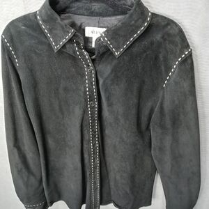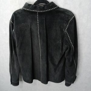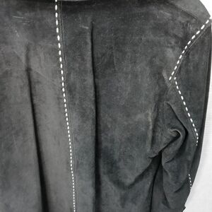 Alfani women's black suede bold stitch button front jacket fully lined sz large. Pit-p 21". L 27". 134pm