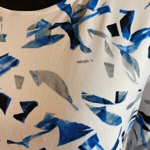 Add a pop of color to your wardrobe with this beautiful Alfani blouse! The cobalt blue, broken mirror print is sure to turn heads. Featuring stylish bell sleeves and a flattering handkerchief hem, this blouse is perfect for dressing up or down. It is in excellent condition and ready for a new home. Don't miss out - add this gem to your closet today!