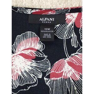 Alfani~18W/20W~Black Floral Printed Surplice-Neck Spot Bloom Red/White Shirt NWT