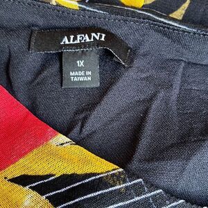 Alfani 1X black blouse with white stripes and red/yellow flowers - 3166