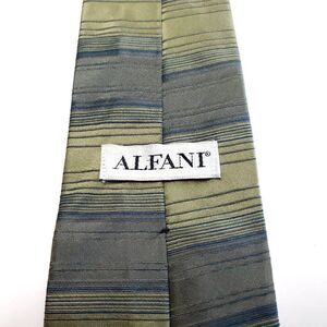 Alfani Green Silk Tie Woven Short Wide Horizontal Stripes