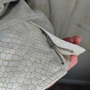 leather Snakeskin snake skin embossed details design contemporary fashion style artsy zipper luxury petite small short womans formal casual formality work career work business