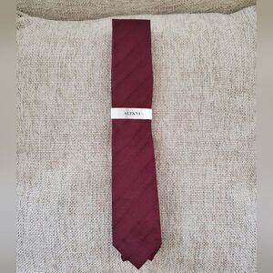 Brand new tags still attached. Retails $55 Dark red color. Alfani Mens Leyton Stripe Neck Tie Dark Red 2.75" 100% Polyester Os9sc