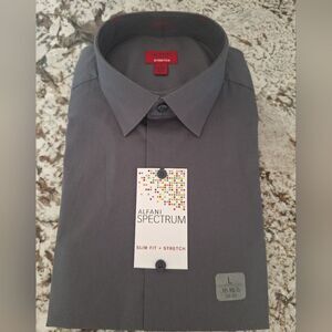 Alfani Men's Gray Slim Fit Stretch Shirt Size L/ 16-16.5/32-33