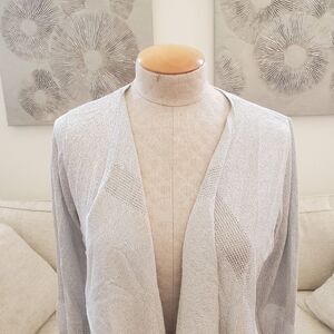 Alfani Metallic Thread Mixed-Stitch Open Cardigan in Gray/Silver- NEW