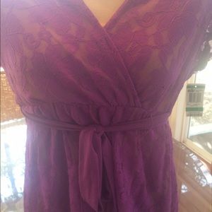 "Alfani"Orchid Petal Lace Lined Tunic Top with Tie
